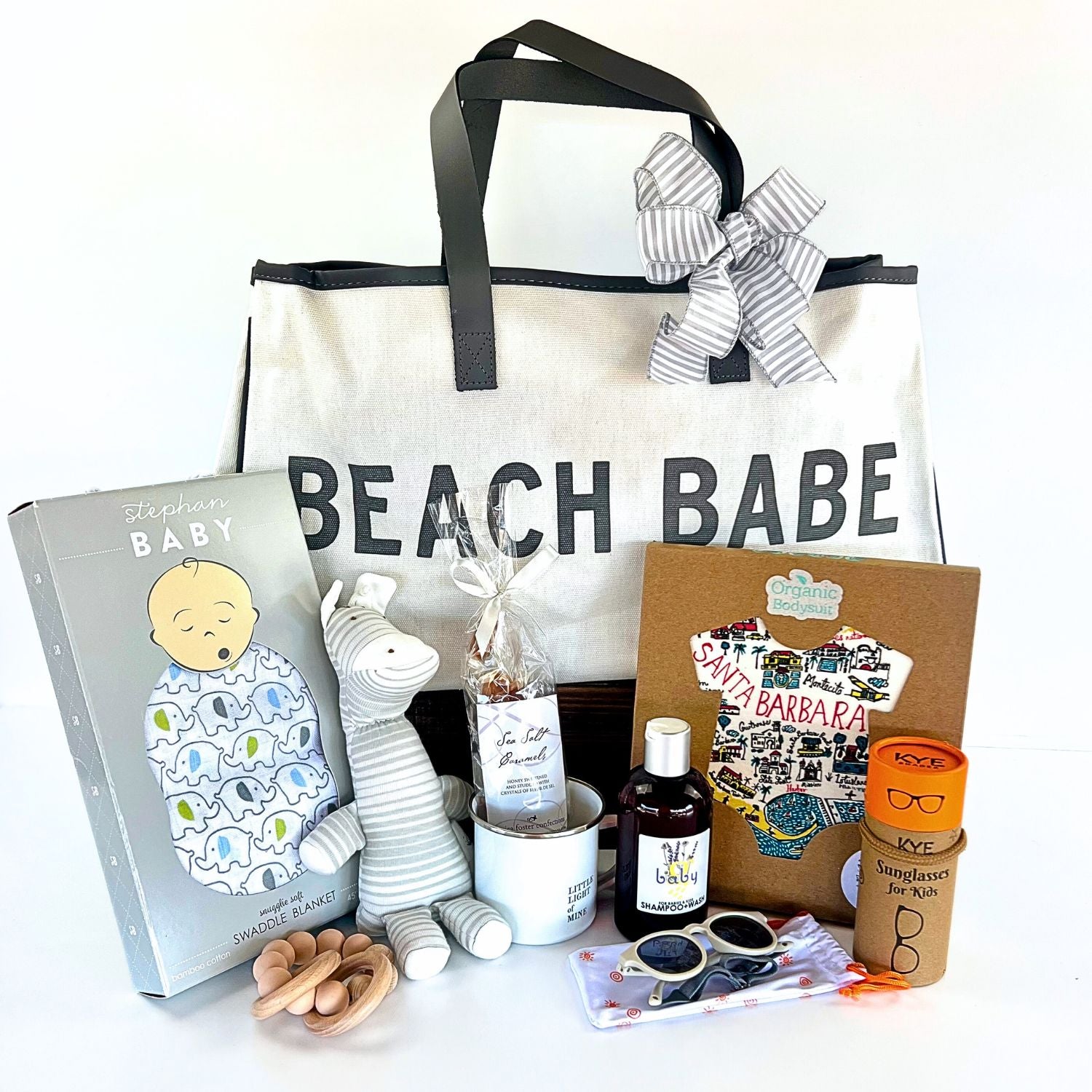 The perfect present for beach-loving babies and moms in Santa Barbara. This spacious canvas tote bag is packed with treats, such as an organic cotton stuffed baby toy, a Santa Barbara map onesie (size 0-6 months), a muslin baby swaddle for sun and salt protection, a wooden and silicone teether for entertainment, and a small enamel camping mug for little hands. Baby sunglasses with 100% UV protection and a durable BPA-free plastic frame are included for worry-free adventures. Moms can indulge in Jessica Foster's sea salt caramels, and after a day at the beach, The Grapeseed Company's baby wash and shampoo will wash away the sand and salt, leaving only fond memories behind.