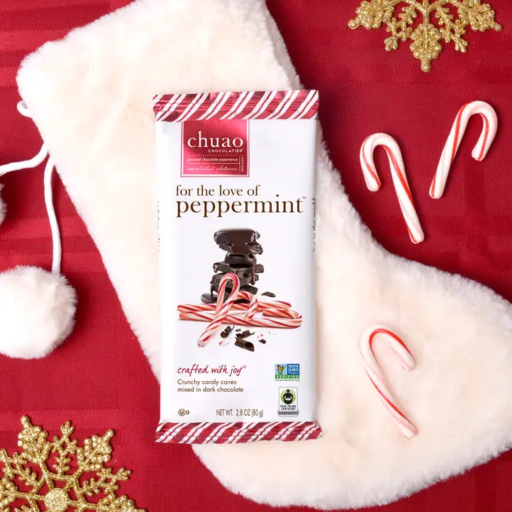 Indulge in the festive spirit with this delightful peppermint chocolate bar—a merry marriage of crispy candy cane pieces and rich dark chocolate that captures the magic of the season. Each 2.8 oz bar delivers that perfect balance of smooth, premium chocolate and refreshing peppermint crunch. A little taste of holiday joy that's sure to brighten your moments and spread seasonal cheer.