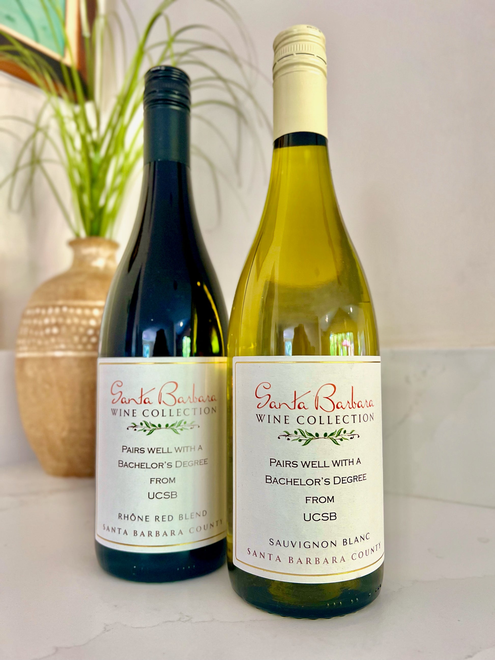 When you want to make a big impression or you just aren't sure if they prefer red or white wine, send our exceptional gift set with two bottles of Personalized wine from award winning Margerum winery. Simply type your message of two to three lines of text in the note section of your order and we will create your custom labels on-demand. The labels are a unique way to express your gratitude, announce an engagement or pregnancy, or even use as a recognition for achievements like graduation, retirement, or a new job.